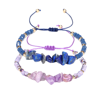 Neuer Vintage-Stil für Armband Kostbarer Geburts stein Amethyst Lapislazuil-Chips Modische Edelstein perlen, geflochten für Armband