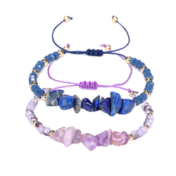 Nuevo estilo Vintage para pulsera Piedra natal preciosa Amatista Lapislázuli Chips Cuentas de piedras preciosas de moda trenzadas para pulsera