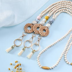 Cordones de cuentas de madera de ratán, insignias de identificación, collar de enfermera con cuentas, cuentas de madera bohemias para profesores, cordones separables, soporte para insignia, regalo